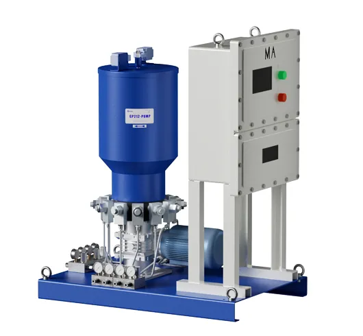 Le système de lubrification progressive GP-212 fournit une grande quantité de graisse avec jusqu'à 12 unités de tête de pompe. La conception modulaire de la pompe de lubrification centrale offre une économie, une facilité d'installation et de maintenance, et élimine le besoin de tubes pour combiner deux ou plusieurs éléments de pompe.